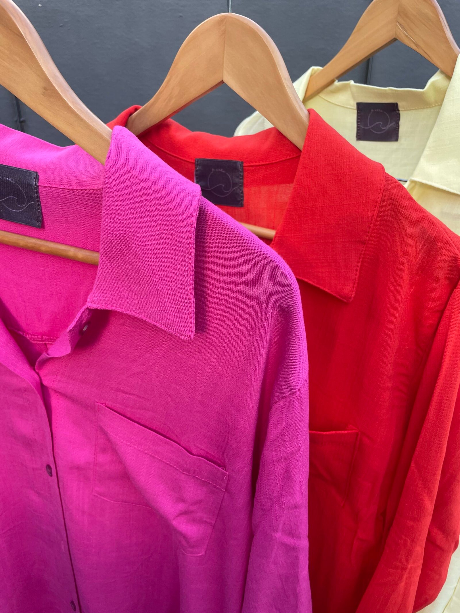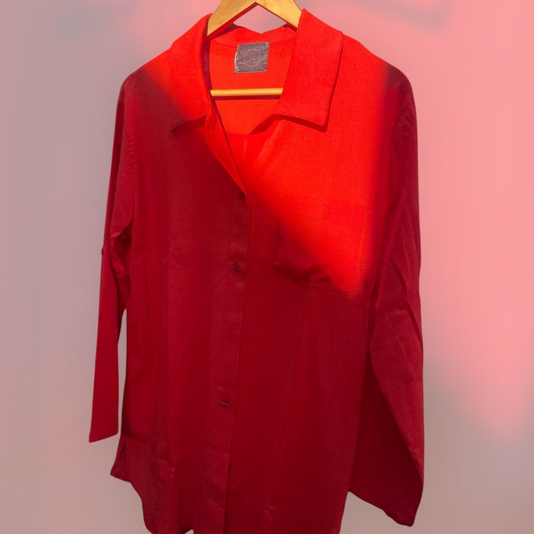 Camisa Atardecer, es una camisa de lino suave con un tono rojo cálido que recuerda los últimos instantes del día. Inspirada en la energía tranquila del sol al bajar. Atardecer aporta presencia sin imponerse y combina perfecto tanto con looks relajados como con un outfit más elegante.